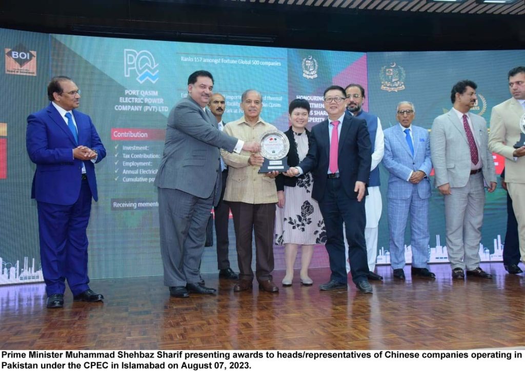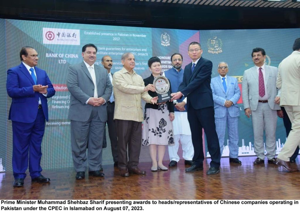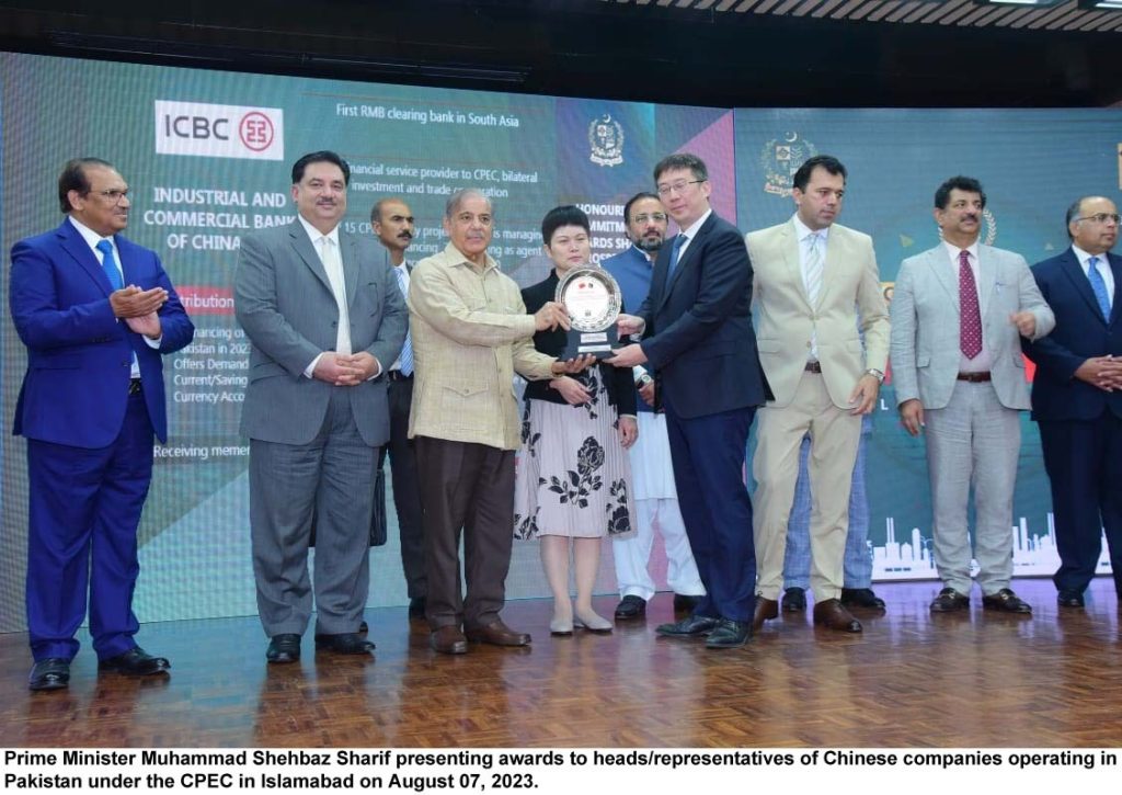 Earlier the prime minister gave awards to top performing Chinese companies working especially in projects under CPEC in Pakistan.